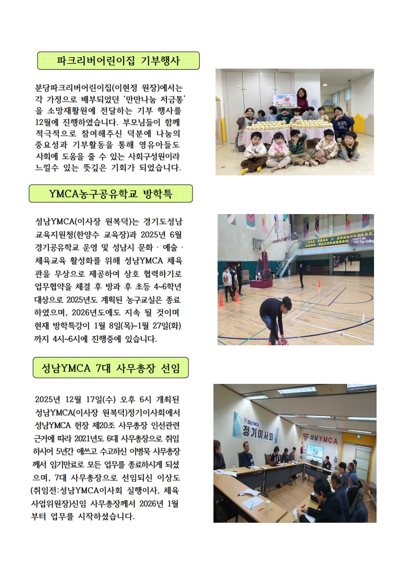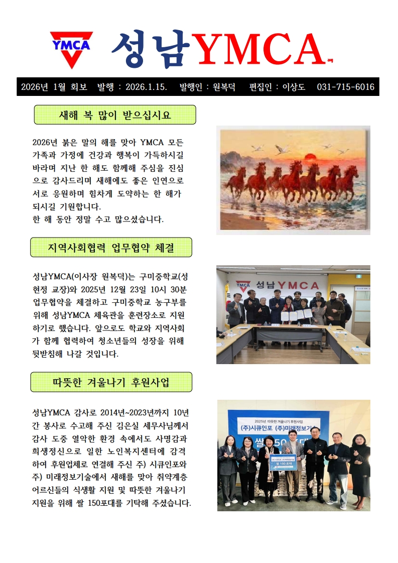 2026년 성남YMCA 1월 회보